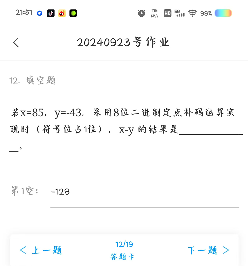 答案是 10000000 也就是 -128 但是没有说让写二进制还是10进制。