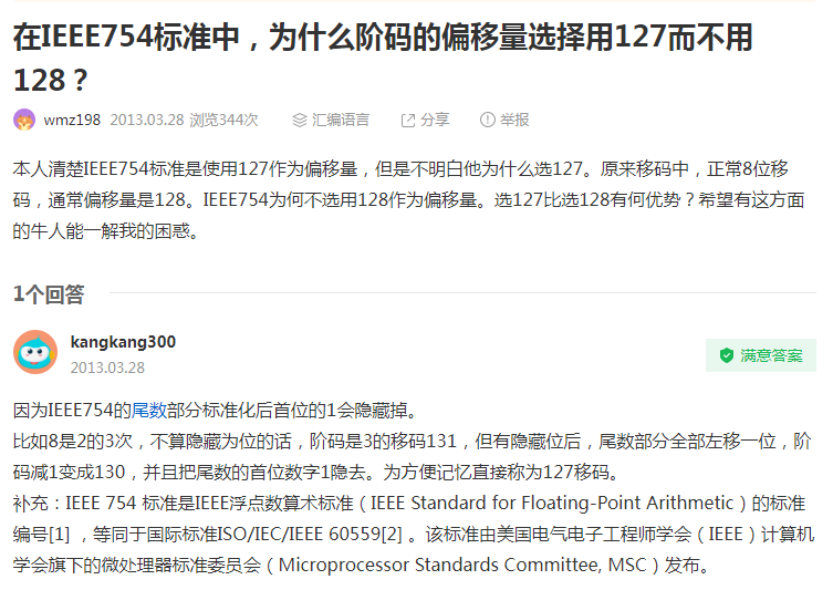 我觉得书上的错了。偏移量应当是127。如果按照128来算,那么尾数不应当把最高位隐藏。